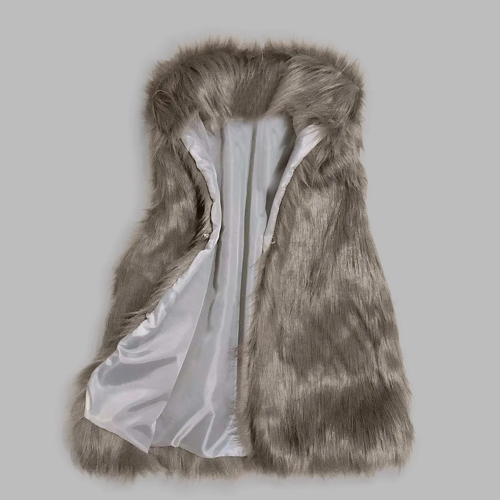 Cappotto Gilet di lana pelliccia sintetica Colletto alla coreana